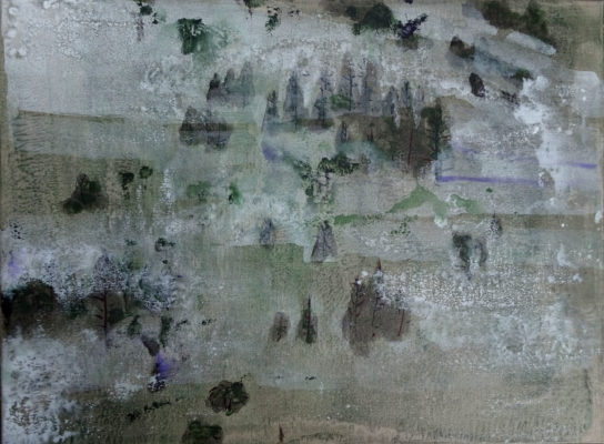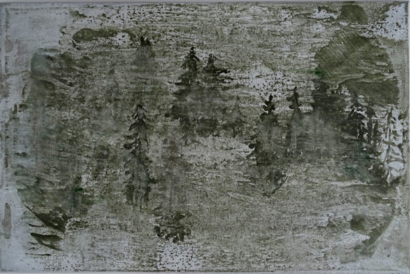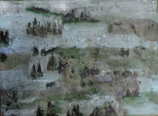 In de bergen 4, tempera en inkt op linnen, 60×80 cm