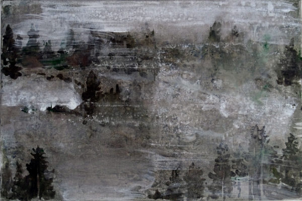 In de bergen 4, tempera en inkt op linnen, 60×80 cm